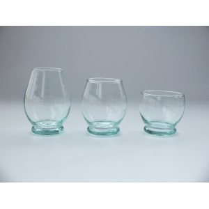 Pack de 6 vasos de vidrio reciclado soplado pieza a pieza. Capacidad aproximada 360 ml.
